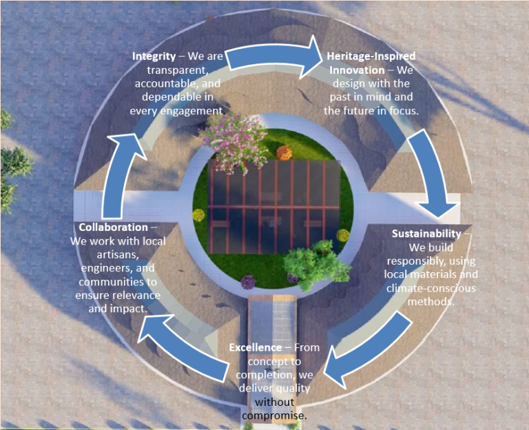 To become Africa’s leading design-build firm, fusing traditional African aesthetics with modern engineering to redefine the continent’s architectural identity.
